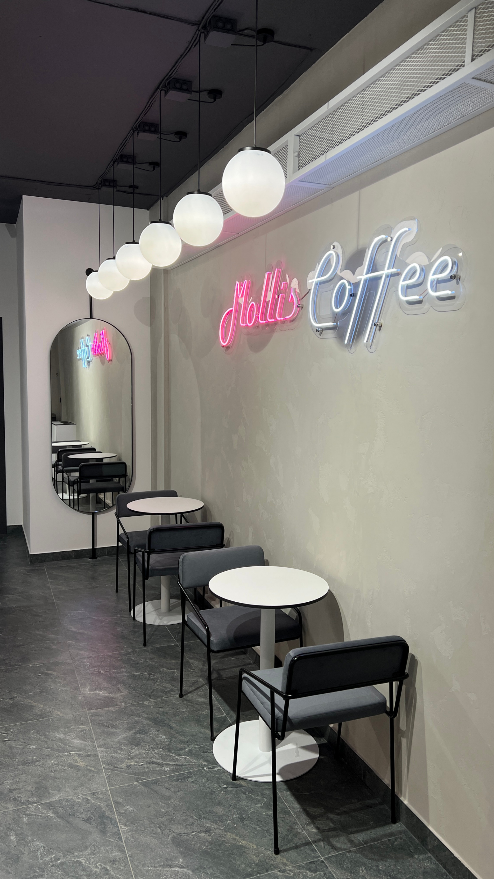 Затишок у кожній деталі: від м’якого сяйва неонових вивісок до ідеальної пінки на вашому лате. Molis — це простір, де сучасний дизайн створює ідеальне тло для ваших особливих моментів.